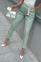 Элегантные брюки со стрелками- вытягивают фигуру. Модель на частично притачном поясе,собранном на эластичную тесьму по спинке, выполнена из приятной, однотонной ткани с добавлением вискозы. Акцентом в брюках являются отделочные пояски с пуговицам в тон. Спереди застёжка на молнию и петлю-пуговицу и функциональные косые карманы. Сзади - два кармана с листочками.