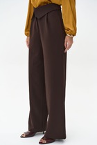 Широкие брюк-палаццо со шлевками-складками. Детали: брюки на притачном поясе, застежка на молнию и брючный крючок, боковые карманы. Задние части брюк с вытачками и имитацией кармана.