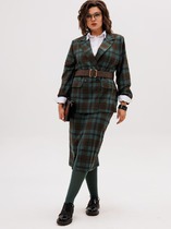 Комплект, состоящий из блузки и юбки. Блузка полуприлегающего силуэта, длиной выше линии бедер. Блузка выполнена на съемных регулируемых бретелях. Спинка с талиевыми вытачками и средним швом, в котором обработана застежка на потайную тесьму-«молнию». Перед с нагрудными вытачками. По верхнему шву переда и спинки частично вставлена резинка. В боковых швах обработаны разрезы. Блузка двойная из основной ткани. Юбка прямого силуэта, длиной до щиколотки, на притачном поясе. Юбка двойная: верхняя юбка выполнена из основной ткани, нижняя – из шифона. Верхняя юбка с талиевыми вытачками по заднему и переднему полотнищам. Нижняя юбка с высокими разрезами по боковым. В левом боковом шве обработана застежка на потайную тесьму-«молнию».