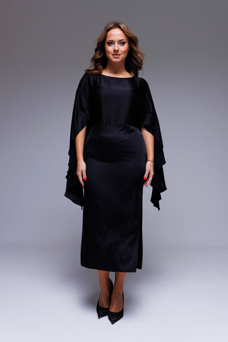 Платье, черный атлас,миди, рукава летучая мышь