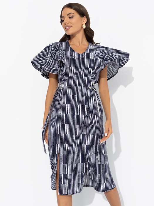 Ранним утром всё кругом говорило тебе: «Останься дома!». И только платье от CHARUTTI шепнуло: «Надень меня. Нас ждут великие дела». И действительно, всё в этот день складывалось наилучшим образом. Платье в длине миди приталенного силуэта. Линия талии регулируется вшитым поясом с металлической фурнитурой. Рукава изделия в виде объемных рюш. Есть разрезы спереди.