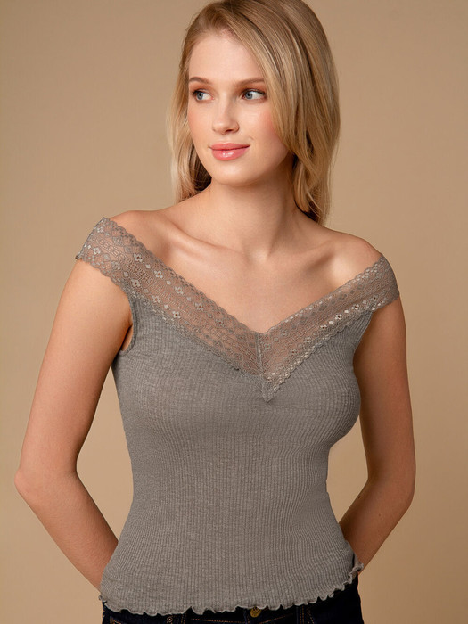 Женская майка с рубчатой текстурой, выполненная из мягкого хлопка и легкого модала, обладает приятными тактильными свойствами. Дизайн с текстурой в рубчик придает изделию актуальный вид и визуально подчеркивает контуры фигуры. Кружевные рукава добавляют утонченности, делая майку универсальным элементом, который сочетается с различными нарядами.
