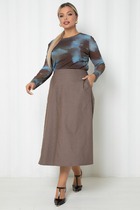 Юбка утепленная прямого силуэта с небольшим расклешением книзу, с карманами и разрезом на задней половинке. Отсутствие притачного пояса позволяет регулировать посадку изделия по талии. РЕКОМЕНДАЦИЯ: в больших размерах и в случае маленькой разницы между ОТ и ОБ выбирайте изделие на размер больше обычного.