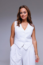 Обаятельный жилет свободного силуэта белого цвета. Жилет выполнен в технике ручного вязания из натуральных нитей с добавлением шерсти. Рост фотомодели — 170 см.