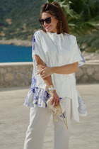 «Мраморная рубашка» от Анелли - это сочетание расслабленной элегантности и выразительного характера, которое делает образ особенным с первого взгляда. Прямой силуэт мягко ложится по фигуре, создавая ощущение свободы и уверенности, а отложной воротник на стойке добавляет утончённости и благородства. Спущенное плечо и длинные рукава на манжетах придают образу непринуждённую женственность, а фигурный низ делает силуэт интересным и современным.