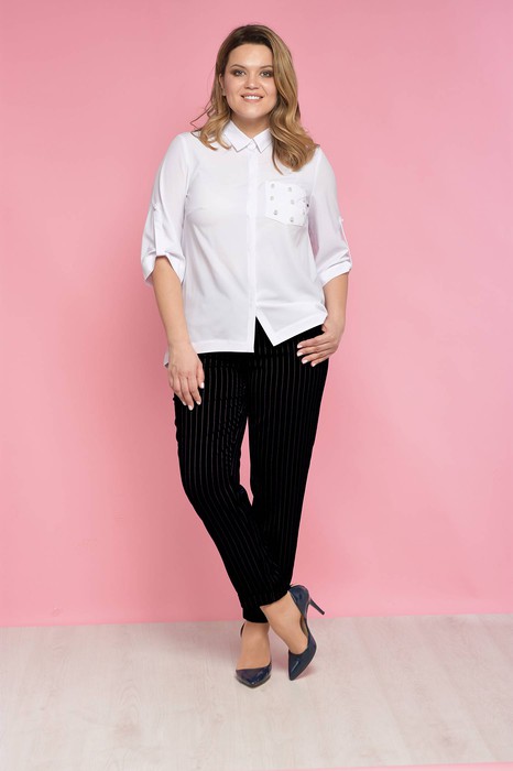 Блузка женская Не тянется. Замеры для (48) размера. Длина по спинке: 80 см. Длина рукава: 41 см. Рукав: 3\4 Декор: Карман по переду блузы украшен жемчугом. Так же жемчужные пуговицы на рукаве и воротнике.