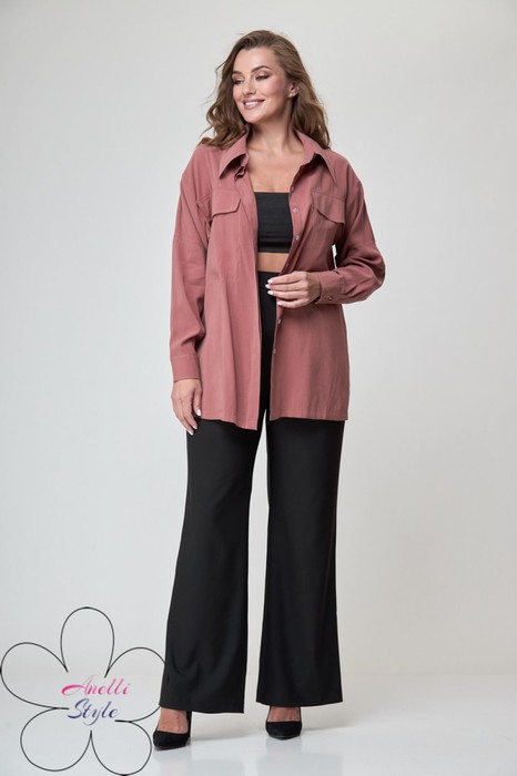 При съемке в образе использованы изделия бренда ANELLIstyle – брюки 1293.2 и топ 767