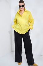Блузка прямого силуэта, с втачным одношовным рукавом с патой, внизу со складкой и манжетой с застежкой на петлю-пуговицу. Полочка с центральной застежкой по планке на петли-пуговицы. По переду настрочен карман с печатью "Cherry".  По спинке кокетка и встречная складка от кокетки. Воротник рубашечный отложной на стойке. Спинка и полочка с фигурным низом. Внизу по боковым швам обработаны разрезы.