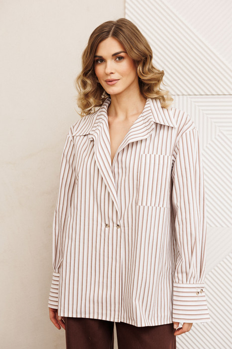 Совместные покупки Уфа Женская одежда Блузки, рубашки — Рубашка Gizart 15443 бело-коричневый
