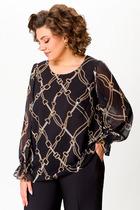 Стильная рубашка свободного кроя с центральной планкой на застежку пуговицы  по полочке из  ткани содержащей хлопок, со спущенной линией плеча. Изделие с горловиной  стойкой. По  переду  рубашки накладные карманы.  Рукав втачной двух шовный, в 12см от низа рукава кулисrа со втянутым в нее шнуром для затягивания.  Спинка изделия с кокеткой и заложенной складкой. Низ рубашки фигурный с разрезами по боковым швам.
