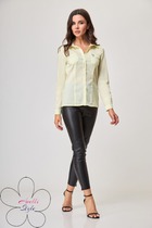 Тёплая рубашка прямого кроя со спущенной линией плеча. Горловина обработана рубашечным воротником с отрезной стойкой. Застёжка центральная на петли-пуговицы. Спереди есть нагрудные карманы. Низ рукава обработан притачной манжетой, застёгивается на петли-пуговицы. По боковым швам карманы и фигурные разрезы. Изделие на подкладке.