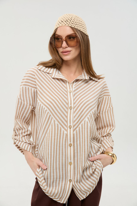Совместные покупки Уфа Женская одежда Блузки, рубашки — Рубашка NIKVA н953-4 песочные полосы