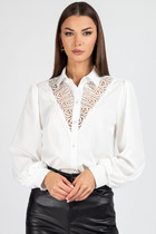 Рубашка прямого силуэта с фигурным низом. Выполнена застежка на петли и пуговицы. По горловине стояче-отложной воротник с отрезной стойкой. По спинке кокетка и склада на свободу движения. Рукав рубашечного кроя.Перед рубашки декорирован дизайнерской вышивкой.