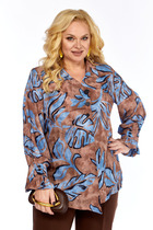 Блуза Элль стиль 2398/2а коричневый, голубой принт