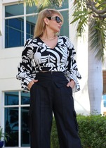 Безумно красивая и стильная блузка с акцентом в виде яркого принта - идеальный вариант для тех, кто любит привлекать внимание. Блузка «оверсайз» с центральной застёжкой на петли-пуговицы по планке, воротником рубашечного типа. Спинка с притачной кокеткой. Линия плеча в блузке спущенная, рукав втачной с притачной манжетой по низу. Низ в блузке фигурной формы. В качестве декоративного отделочного элемента в блузке – отделочные строчки контрастного цвета.