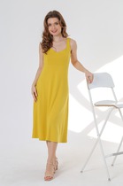 Идеально продуманный крой создаёт женственный силуэт: приталенный лиф с деликатными вытачками подчёркивает изящество фигуры, а мягкие складки от линии талии добавляют лёгкий объём. Длина ниже колена делает сарафан универсальным — он одинаково хорош как для городских прогулок, так и для особых моментов.