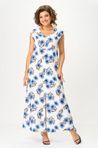 Сарафан женский полуприлегающего силуэта со спущенным рукавом- и завязками. По полочке и спинке изделия- рельефы. Сарафан с воланами ярусами и шитьем по ткани. Пояс входит в комплектацию, хлопок 100%