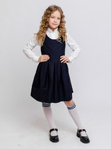 Сарафан с "встречными" складками,с "крылышками" и узким пояском, будет прекрасным дополнением в гардеробе школьницы. Застежка на пуговицах.