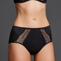 Трусики модели Brazilian с низкой линией талии выполнены из нежного кружева черного цвета с контрастной подкладкой вишневого цвета в передней части и контрастной резинкой с возможностью регулирования по бокам. Задняя часть трусиков выполнена из черного кружева с фестонами по срезам ножек и украшена металлическим шильдиком с наименованием бренда. Ластовица из хлопка. Размерная сетка XS-(90), S-(94), M-(98), L-(102), XL-(106).
