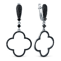 Серьги длинные из серебра с натуральной чёрной шпинелью родированные - Клевер, ч