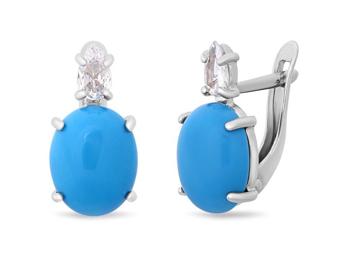 Серьги, арт.656306 Серебро Серебро 925, 1,67 гр., бирюза пресс.