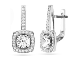 Серьги с фианитом родированные серебро 925*