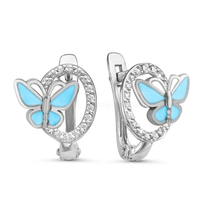 Совместные покупки Уфа Детские аксессуары Украшения, бижутерия — Серьги детские из родированного серебра с эмалью и фианитами - Бабочки 925 пробы