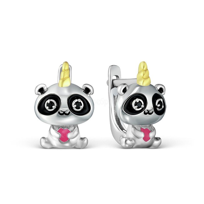 Серьги детские из серебра с эмалью, фианитами и позолотой родированные 925 пробы