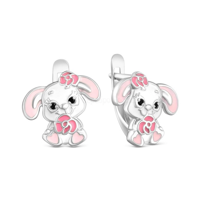 Совместные покупки Уфа Детские аксессуары Украшения, бижутерия — Серьги детские из серебра с эмалью и фианитами родированные - Зайчики, Зайцы