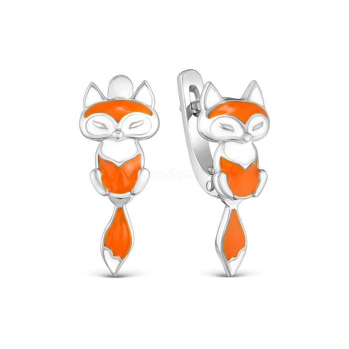 Совместные покупки Уфа Детские аксессуары Украшения, бижутерия — Серьги детские из серебра с эмалью родированные - Лисы (подвижный хвостик) 925 п