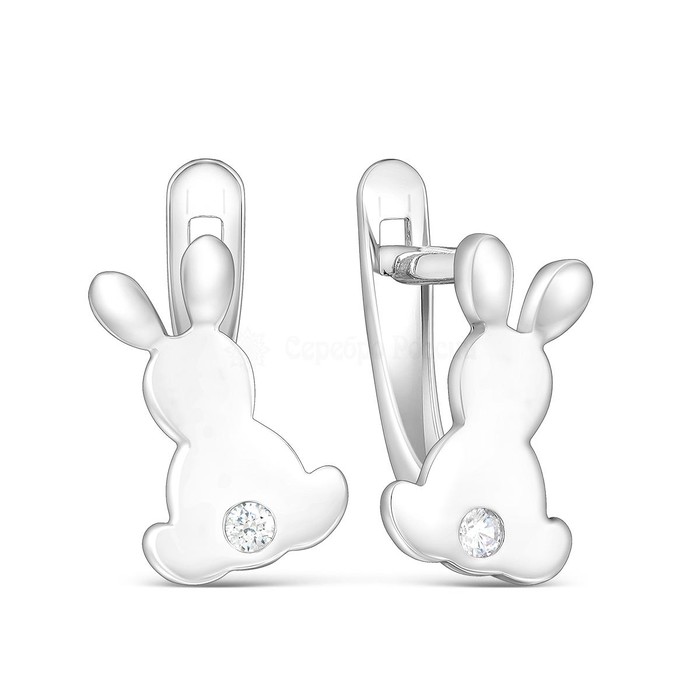 Серьги детские из серебра с фианитами родированные - Зайцы