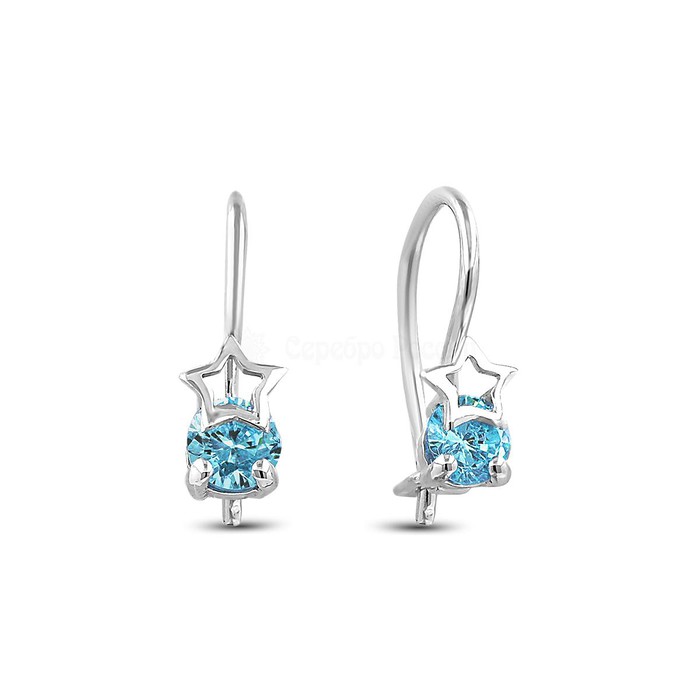 Серьги детские из серебра с голубыми фианитами родированные 925 пробы 402021-196