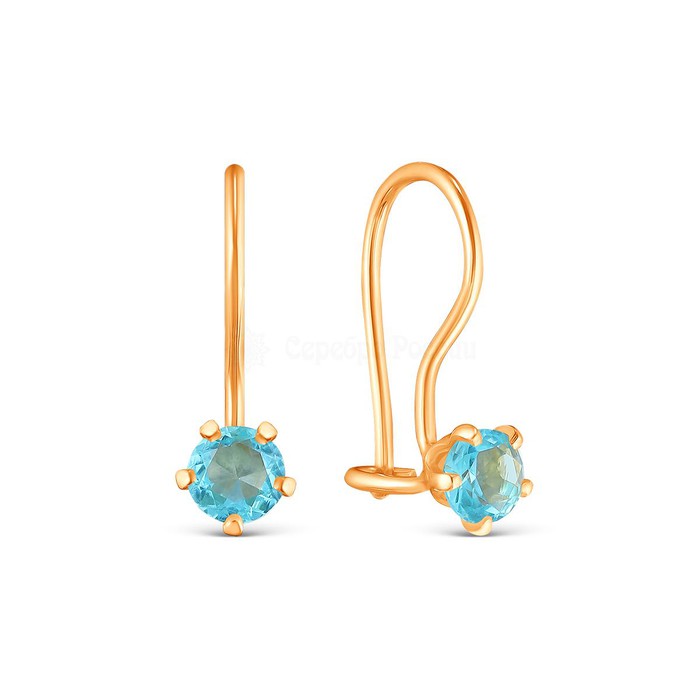 Серьги детские из золочёного серебра с фианитами 925 пробы 151з голубой