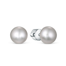 Серьги-пусеты из серебра с культивированным серым жемчугом родированные 04-702-0