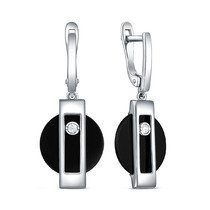 Серьги из серебра с чёрным агатом и фианитами родированные 925 пробы С-4537-Р-Ча