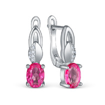 Серьги из серебра с розовым топазом и кубическим цирконием родированные 925 проб