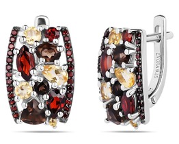 — Серьги, гранат , раухтопаз , цитрин, Сиена