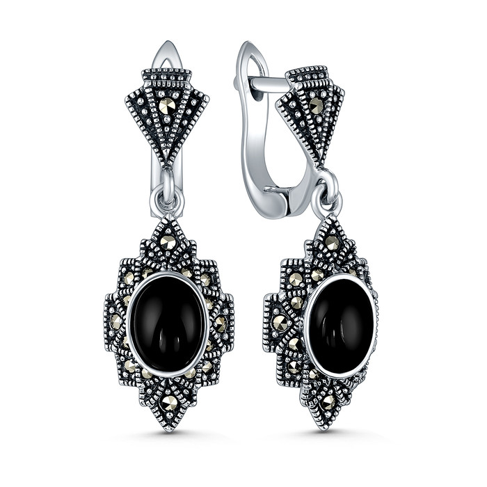 Совместные покупки Уфа Ювелирные украшения и бижутерия Серьги — Серьги из чернёного серебра с натуральным чёрным ониксом и марказитами 925 пробы