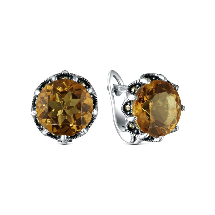 Совместные покупки Уфа Ювелирные украшения и бижутерия Серьги — Серьги из чернёного серебра с султанитом и марказитами 925 пробы HE1369-ZN-LK