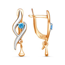 Серьги-пусеты из серебра с пл.кварцем цв.лондон топаз и фианитами 925 пробы 2-26
