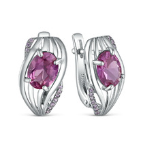 Серьги из серебра с синтетическим александритом и фианитами родированные 925 про