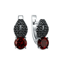 Серьги из серебра с гранатом и чёрной шпинелью родированные 925 пробы 2-534рч404