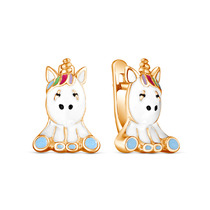 Серьги детские из золочёного серебра с эмалью и фианитами - Единорожки 2323031