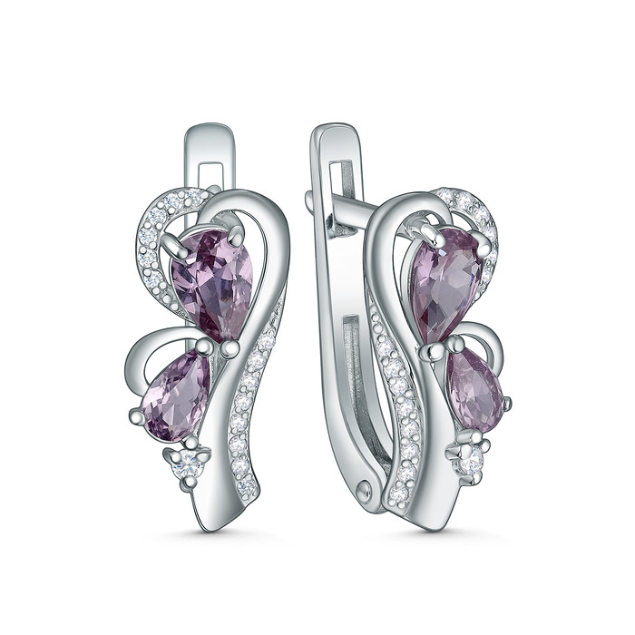 Серьги из серебра с александритом и фианитами родированные 925 пробы 32117р946