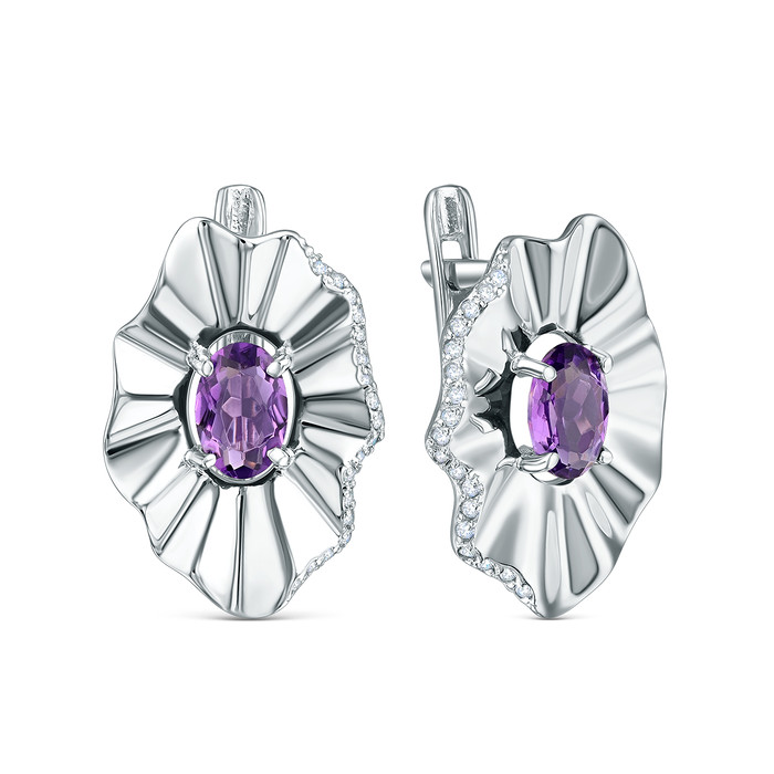 Совместные покупки Уфа Ювелирные украшения и бижутерия Серьги — Серьги из серебра с аметистом и фианитами родированные 2-3871-001