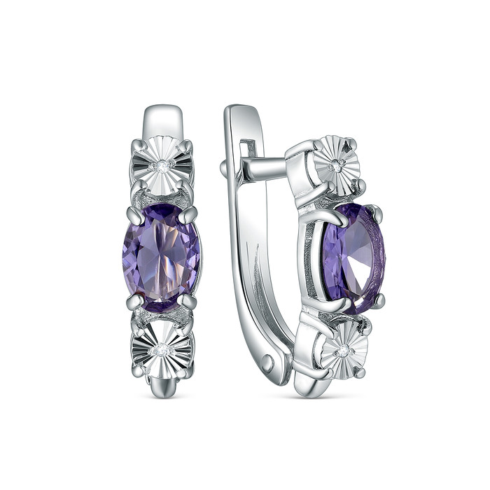 Совместные покупки Уфа Ювелирные украшения и бижутерия Серьги — Серьги из серебра с бриллиантами и плавленым кварцем родированные 925 пробы 2-43