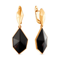 — Серьги из серебра с чёрным агатом родированные 925 пробы С-4039-Р-Ча