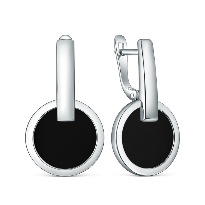 Совместные покупки Уфа Ювелирные украшения и бижутерия Серьги — Серьги из серебра с чёрным агатом родированные 925 пробы С-4527-Р-Ча