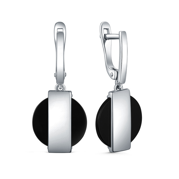 Совместные покупки Уфа Ювелирные украшения и бижутерия Серьги — Серьги из серебра с чёрным агатом родированные 925 пробы С-4536-Р-Ча