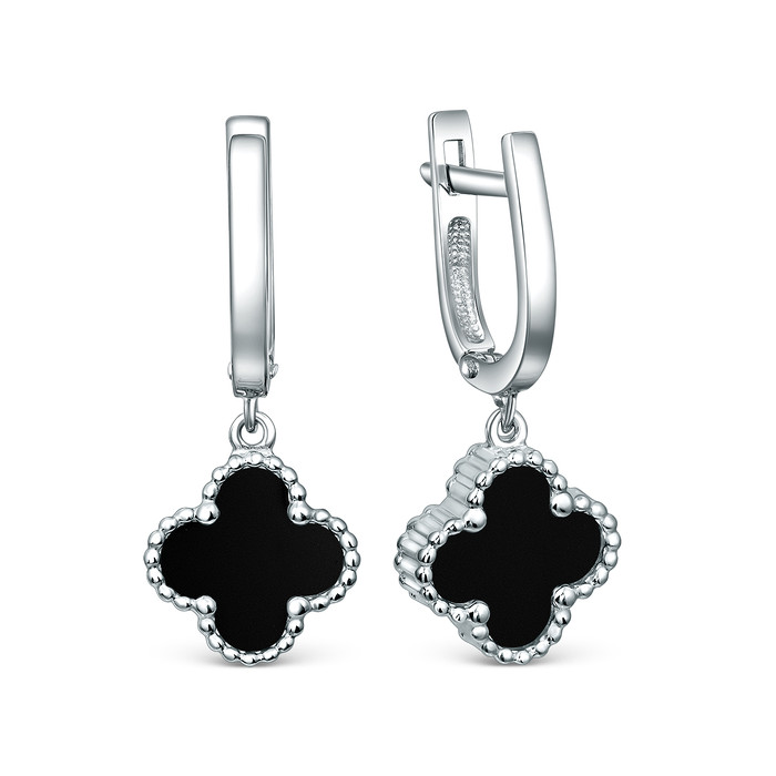 Совместные покупки Уфа Ювелирные украшения и бижутерия Серьги — Серьги из серебра с чёрным ониксом родированные - Клевер, четырёхлистник 925 про